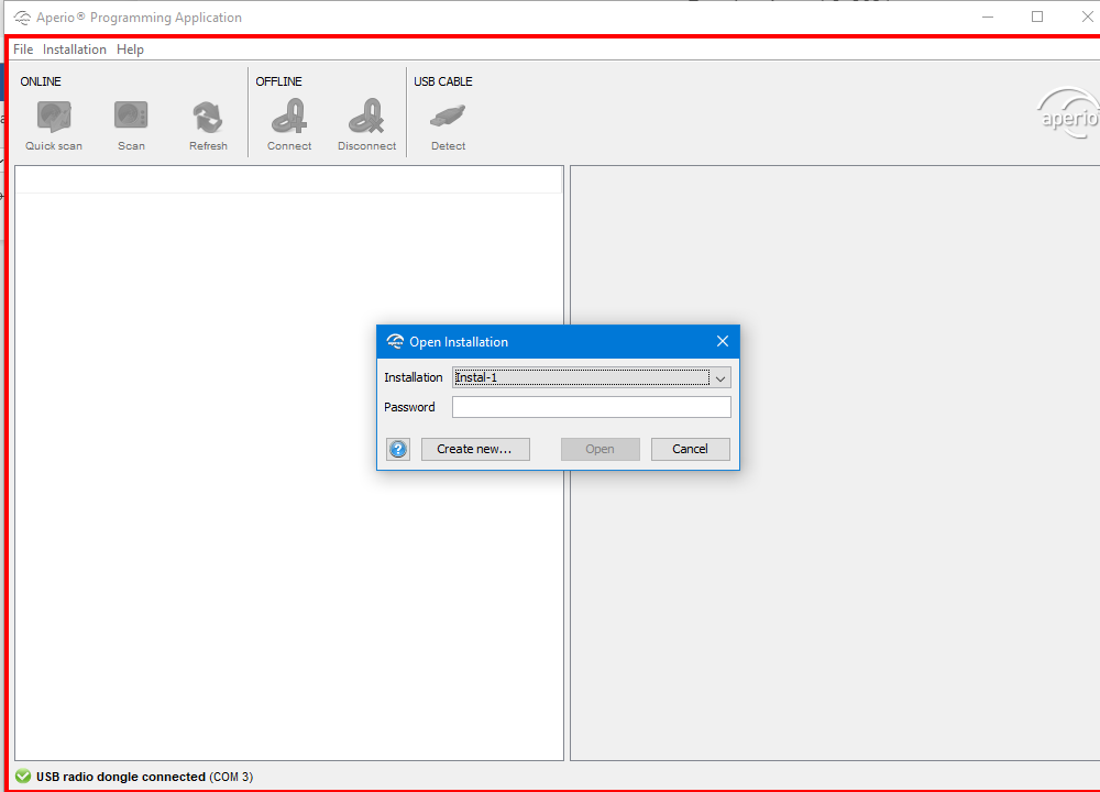 - If the installation is already created, select Quick scan to search for communication hubs within range. The hubs are identified by the last 3 bytes of their MAC address.