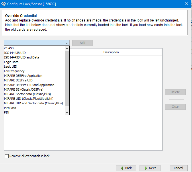 - Right-click on the new lock, and then select Lock/Sensor > Configure. A series of screens are shown for configuring the lock: