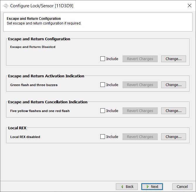 - Escape and Return Configuration (Lock): This function allows the lock to remain unlocked a certain time after the door has been opened from the inside.