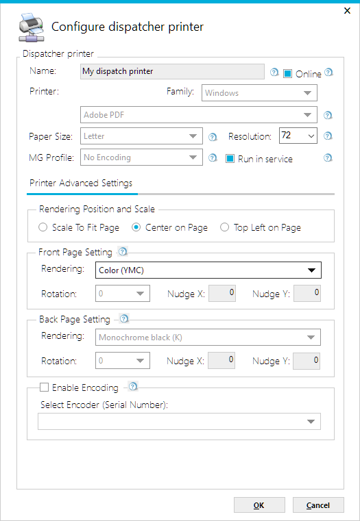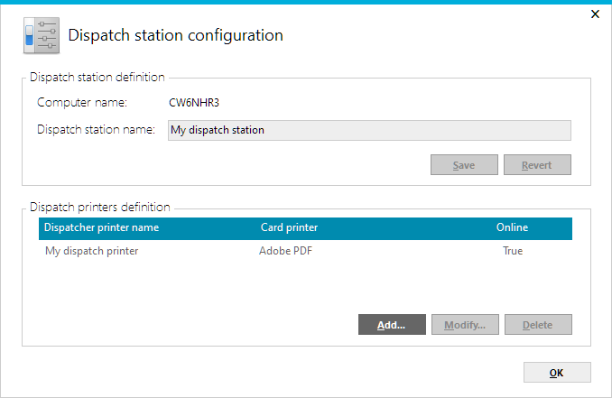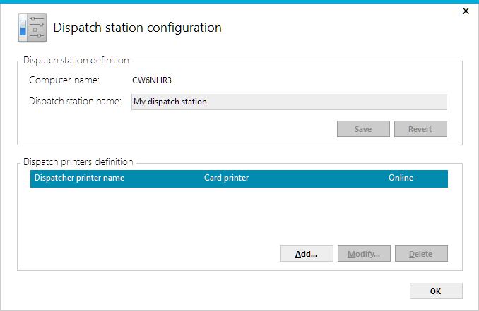 - The defined (configured) printers are listed. Continue adding more printers to the dispatch station.