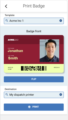 - Now, when a badge needs to be printed in Elements, the printer is available in the Destination list.