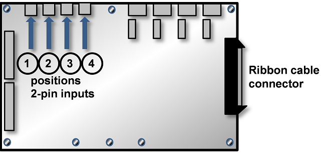 Input blades have eight male, 2-pin input connectors mounted on the blade: