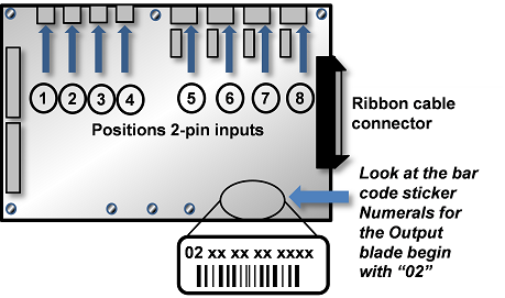 Output blade: Includes eight (8) relay outputs (Input Rated: 6V/55mA).