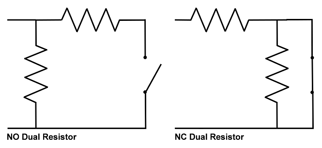 The configuration of resistors shown above must be installed for supervised input resistance values to be properly read by the system. The four states of the dual resistor input circuits are read according to these values: