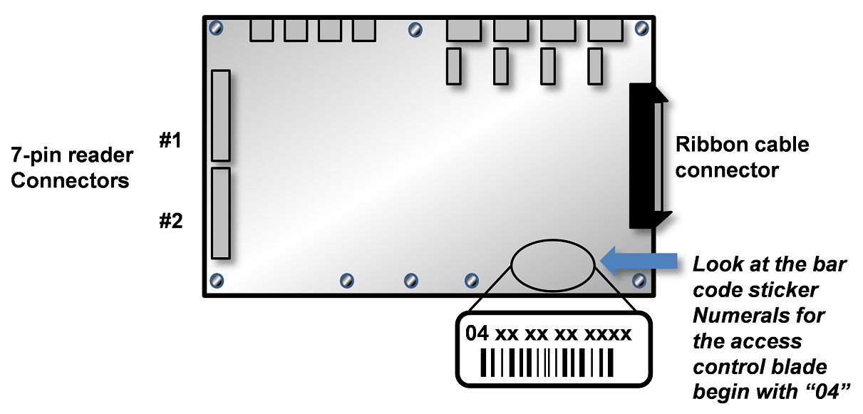 Access control blades have two 7-pin reader connectors mounted on the blade: