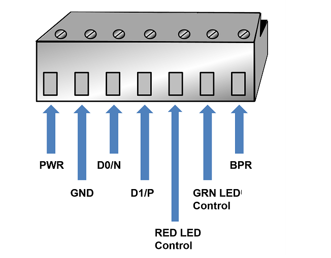 Reader LED control: This varies by manufacturer and model. Some use two-wire LED control and some use one-wire control. Refer to the documentation provided by the reader manufacturer for details on your particular reader. Control involving signal pulsing to change LED color is not supported.