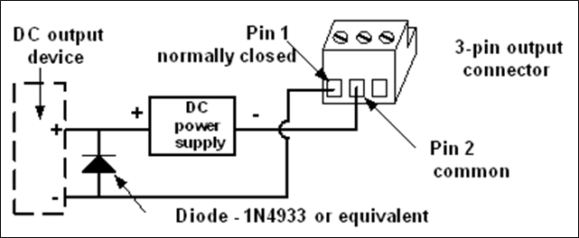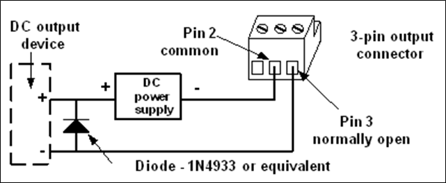 If the output is DC powered and normally open, install a diode (1N4933- 1 A, 50 V, Fast Recovery Diode or equivalent) in the circuit: