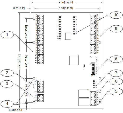 The LNL-1100 processor provides a solution to the host system integrator for sensor monitoring and output control. The LNL-1100 has 16 non-supervised or supervised inputs and two (2) form-C contact relays for load switching. In addition, two (2) digital inputs are used for cabinet tamper and power fault status monitoring. The processor requires 12 to 24 VDC for power.