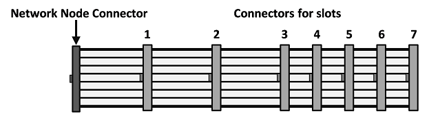 Regardless of the physical slot in which a blade is mounted, its slot number is determined by the ribbon-cable connector you plug into the blade. This is because the ribbon cable (shown in the diagram above) is a bus, and a blade’s position on the bus determines its slot number.