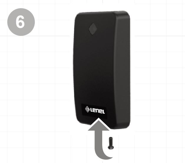 - Secure the reader to the backplate using the supplied M3x10mm screw or use a security screw.