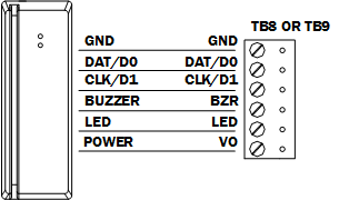 12 to 24 VDC ± 10% (input voltage (VIN) passed through), 300 mA maximum each reader - Data Inputs: TTL compatible or 2-wire RS-485