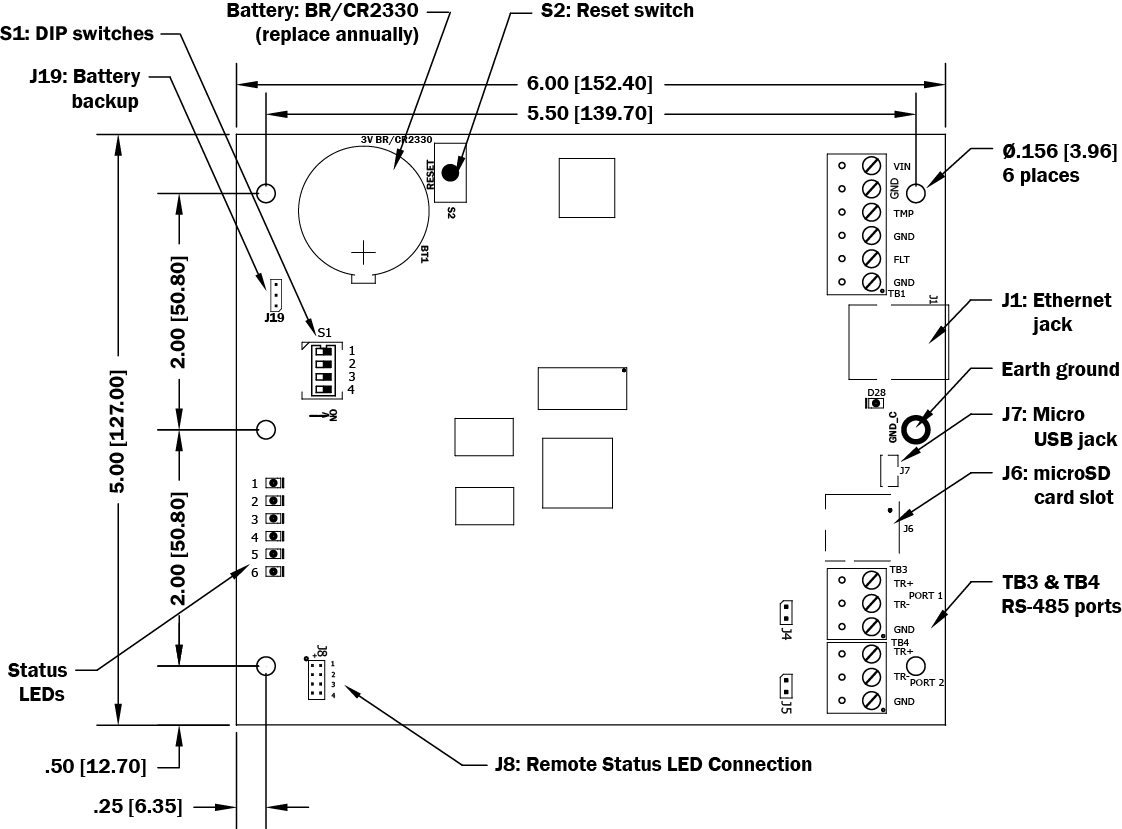 - Micro USB Port: 5 VDC, 500 mA maximum (add 270 mA to primary power current)