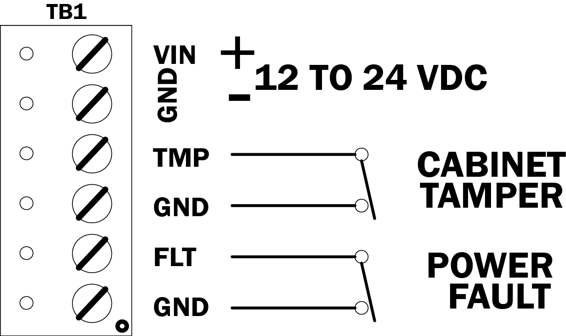 - Inputs: Two unsupervised dedicated for cabinet tamper and UPS fault monitoring
