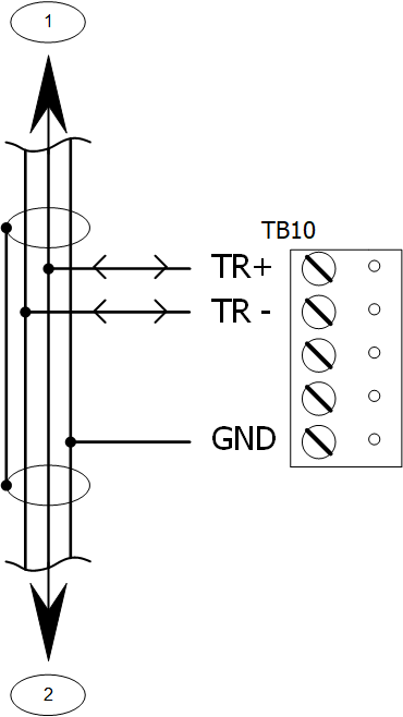 - RS-485: 24 AWG, 120 ohm impedance, twisted pair with drain wire and shield, 4000 feet (1219 m) maximum